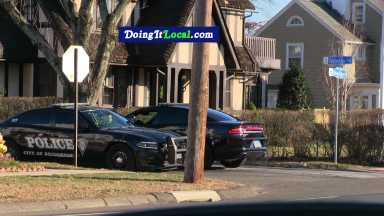 1:49pm–#Westport CT–#Bridgeport CT– Bridgeport police officers can be seen in this photo waiting for state police’s arrival in the 500 block of Brooklawn Avenue. They are investigating an alleged gun-waving incident on Merritt Parkway in Westport. No word at this time if there were any arrests.