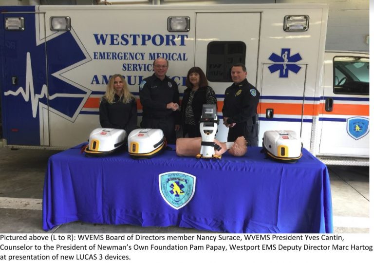 The local non-profit, Westport Volunteer Emergency Medical Service (WVEMS), purchased the mechanical CPR devices after being awarded a $35,000 grant from Newman’s Own Foundation in September. The grant was given in honor of Newman’s Own Foundation 35th anniversary, and was awarded to some of the original recipients of Paul Newman’s generosity.