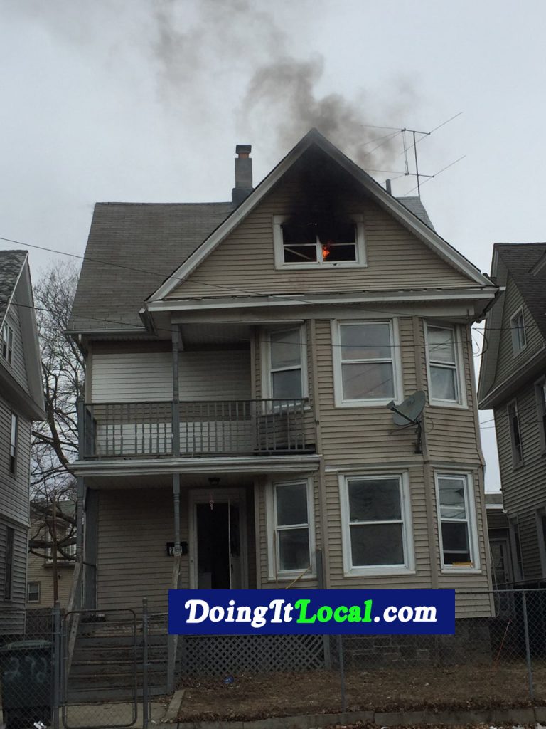 12:33pm–#Bridgeport CT– For tenth grader Rafael Rodriguez it was another day walking home from Bassick High School.  But today it was different as he neared Cottage Street and smelled smoke.  He discovered smoke coming out of the 3rd floor and immediately called 911.  As a result, the firefighters were quickly on the scene and was able to keep the smoky fire contained to the third floor.  Firefighters conducted two searches and found no one in the building.  There were no reported injuries.  The photo was contributed by Rafael taken just moments after calling in the fire.