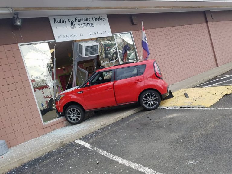 1:04pm–#Milford CT– Police said a”medical episode” caused a woman to black out and crash into Kathy’s Famous Cookies 254 Melba Avenue. There were no reported injuries to the driver or to anyone inside the store. Post Road Photos contributed this photo.