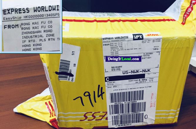 I think I’d be suspcious of the package too. The sender was Rong Kai FU Company (see close up insert top left of the photo).
