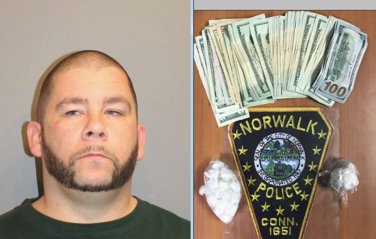 Arrested: Francis Bruno, 38 of 13 Commerce Street Norwalk Charge: Possession of Narcotics, Possession of Narcotics with Intent to Sell, Possession of Narcotics with Intent to Sell within 1500’ of a Public Housing Complex, No Tint Sticker, No Turn Signal (three counts) and Failure to Obey Stop Sign (two counts) Bond: $500,000
