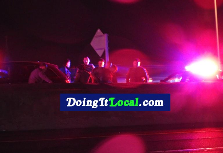 #cttraffic–UPDATE: The suspect in a blue Audi continued into Bridgeport as I predicted, hit a van near exit 29 and was boxed in at 27A. Viewer Oscar captured the suspect being taken into custody. Thanks, Oscar!