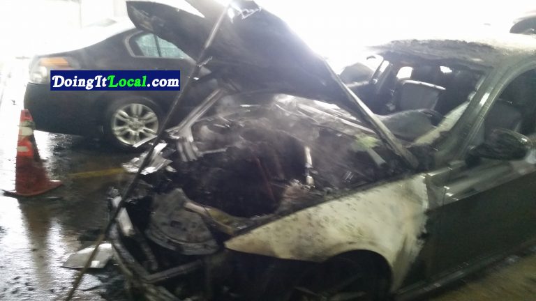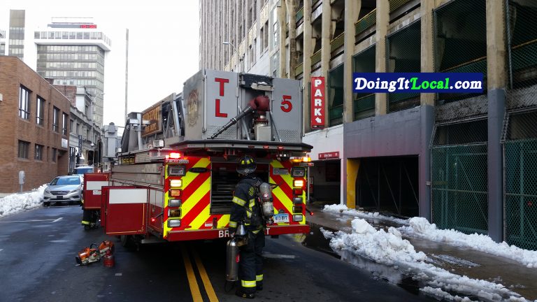 12:02pm–#Bridgeport CT– Today’s vehicle fire was inside the parking garage on John Street near State Street. Firefighters quick response kept the fire from extending to nearby cars and the parking structure itself.