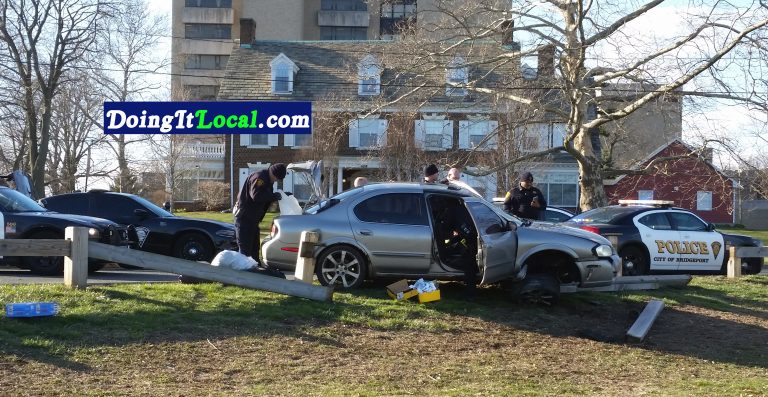 5:19pm–#Bridgeport CT– Police have one person in custody after a short pursuit down Iranistan Avenue and crashed in front of the clamshell at Seaside Park. According to the police radio the person was wanted for having an illegal gun.
