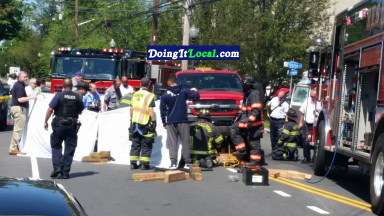2:55pm–#Bridgeport CT–Prayers are needed for a motorcyclist and all involved at Huntington Turnpike near Virginia Avenue. The motorcyclist was pinned under and trapped under the pickup for approximately a half hour. Firefighters had to lift the truck to free the man while family members looked on.