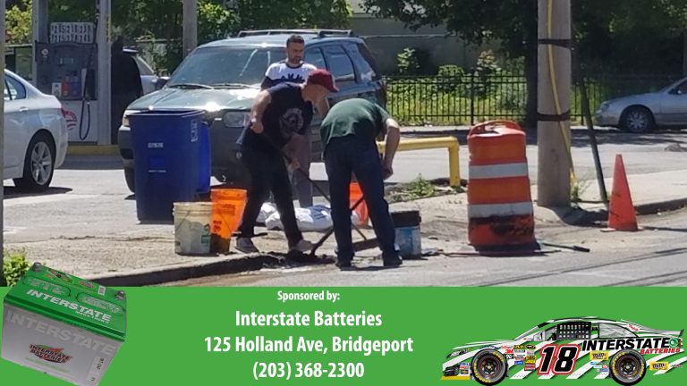 1:39pm–#Bridgpeport CT– Firefighters responded to a Hazmat situation at the Turnid gas station at 624 E Main Street. According to radio reports, gasoline was siphoned from the in-ground tanks and it spilled into the street. The private hazmat team can be seen using speedy-dry type to absorb the gasoline.