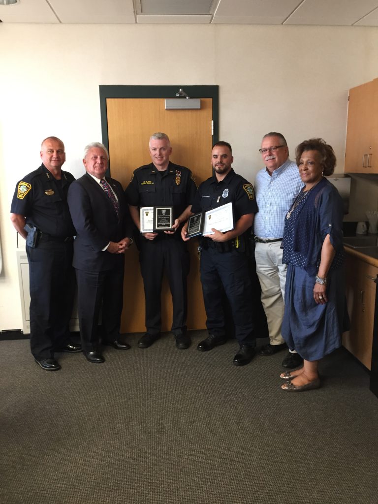 #Norwalk CT–Â The June 2018 Officers of the Month are Lieutenant Terrence Blake and Officer Christopher Kassimis. They were recognized for their life-saving actions that occurred on June 22, 2018. Lieutenant Blake and Officer Kassmis responded to a report of an unconscious person who was not breathing. They quickly determined that the person was suffering from an opioid overdose. They administered Narcan and provided oxygen. After a short time, the person began breathing and regained consciousness. Chief Kulhawik noted that this was the first Narcan save by the Norwalk Police Department. Congratulations on a job well done!