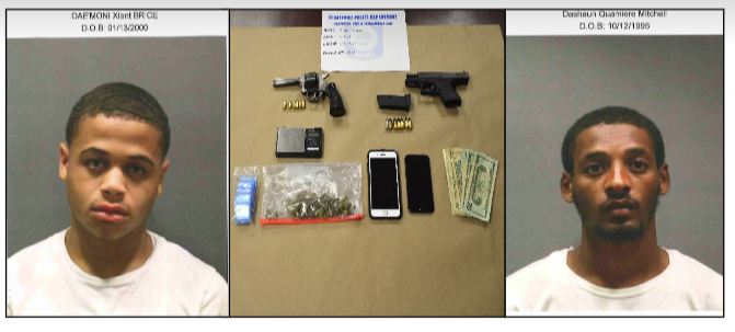 The juvenile driver (17 year old)) was charged with Simple Trespass, Weapon in a Motor Vehicle, Carrying a pistol without a Permit, Possession of Marijuana with Intent to Sell, Possession of Narcotics within 1500 feet of a Housing Project, Operating a Drug Factory and Possession of Drug Paraphernalia. A second firearm was found under his seat. The weapon, a loaded revolver and marijuana were found under the juvenile’s seat.