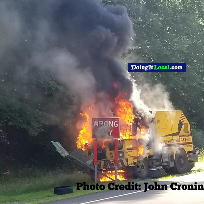 1:00PMish–#cttraffic–#Shelton CT–Today’s vehicle fire was a street sweeper Street on Route 8 near exit 12 in Shelton.