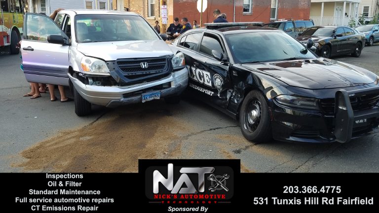 7:01pm–#Bridgeport CT– There were no injuries reported in crash between a police car and an SUV at the intersection of Olive and Coleman Street.