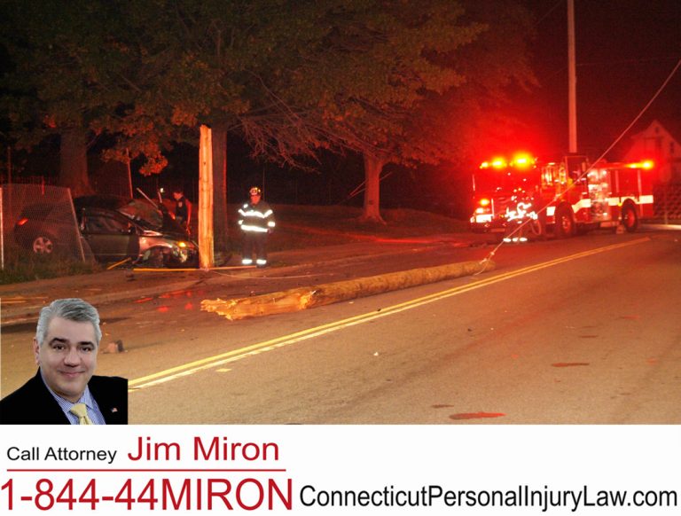 10:31pm–#Bridgeport CT– Madison Avenue at Beers Street is closed as a car hit a utility pole which as you can see is in the street. Firefighters were called to pop the door to free the driver.