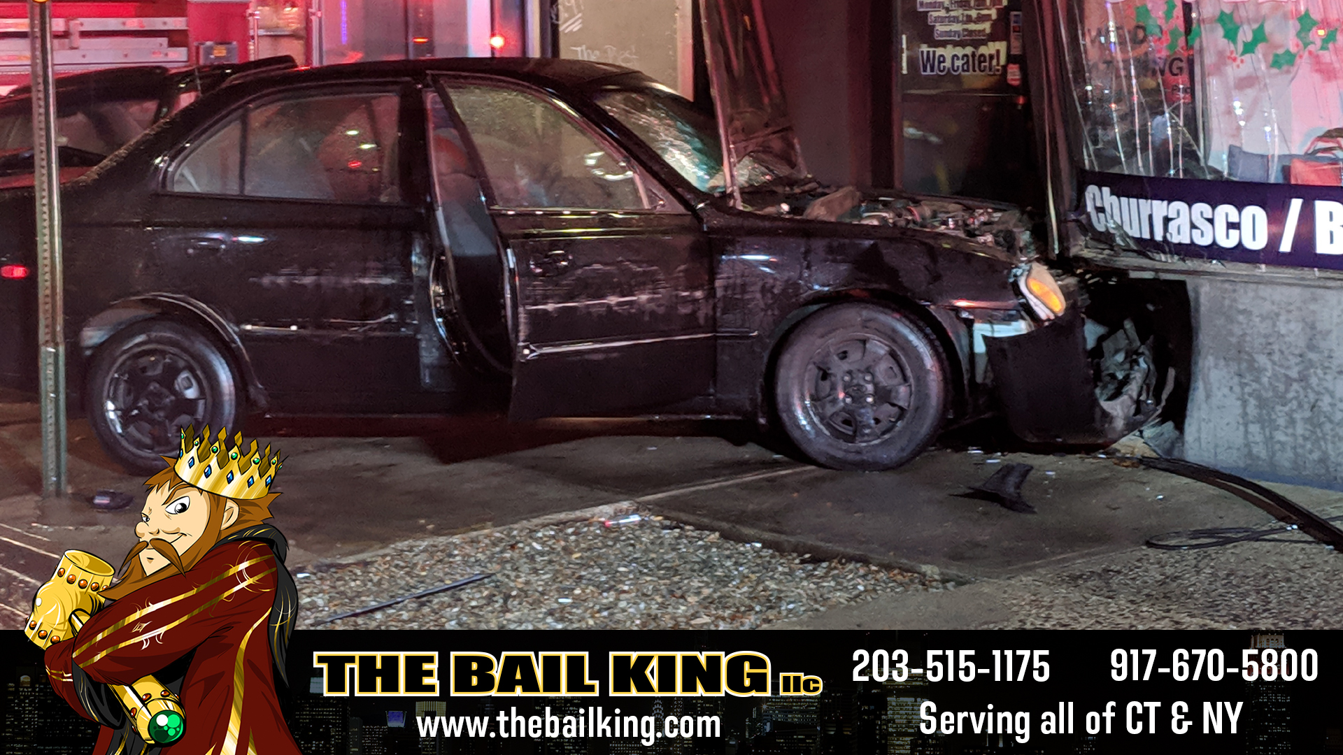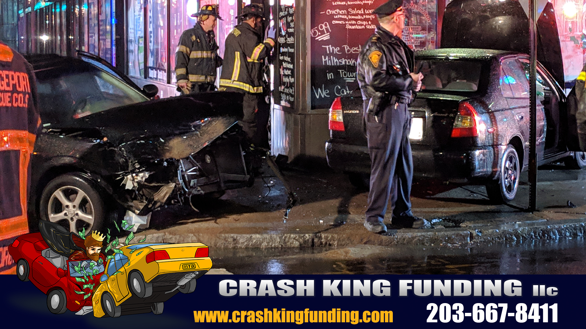 8:43pm–#Bridgeport CT– One person was injured in a two-car crash on Main Street at the intersection of Fairfield Avenue. First responders confirmed that the driver of the car went into the building fled on foot after the crash but police apprehended him a short time later. The building at 100 Main Street, The Funchal Americana Buffet received significant damage as well.