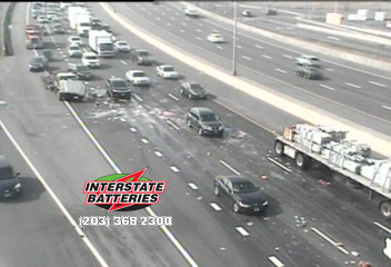 12:27pm – #Bridgeport CT – Evita la I-95 norte cerca de la salida 26. Un accidente de tres camiones, incluyendo un camión de “caja” que perdió su carga ha botado artículos a través de la carretera. ¡Toma una ruta alternativa!