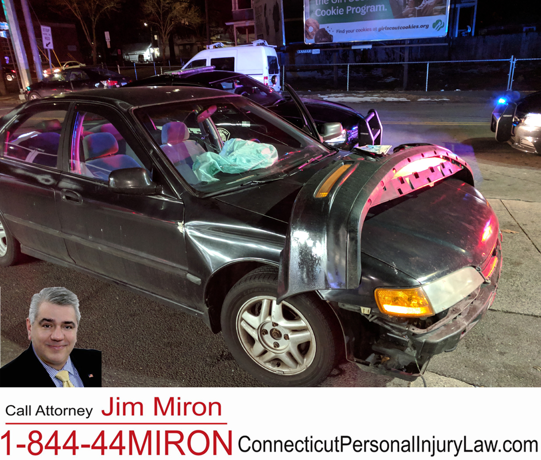 8:33pm–#Bridgeport CT– There were no reported injuries in a two-car crash at Main and Golden Rod, one car hit the medical building at 3175 Main Street. Both cars had significant damage but the building did no seem to have any damage.