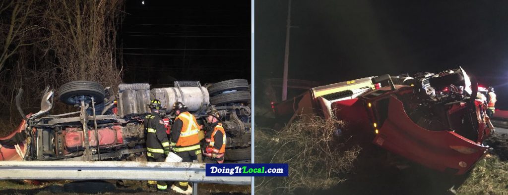 2019-03-28 @ 4:51am–#Westport CT–The Westport Fire Department responded to a reported Tractor Trailer Rollover on Interstate 95 Northbound between Exits 18 -19. Westport responded with 2 Engines, a Rescue and a Shift Commander. The first unit arrived on scene and reported a Tractor Trailer on its side with 1 occupant trapped in the cab. Units also reported a small fuel additive leak. The occupant was extricated by Westport and Fairfield Fire Departments. The occupant was transported by Westport EMS to a local hospital. Units continue to operate on the scene with CT State Police, DEEP, CT DOT, CT DCP and private contractors for clean-up. Commuters can expect delays on Interstate 95 Northbound between Exits 18-19 through the morning commute.