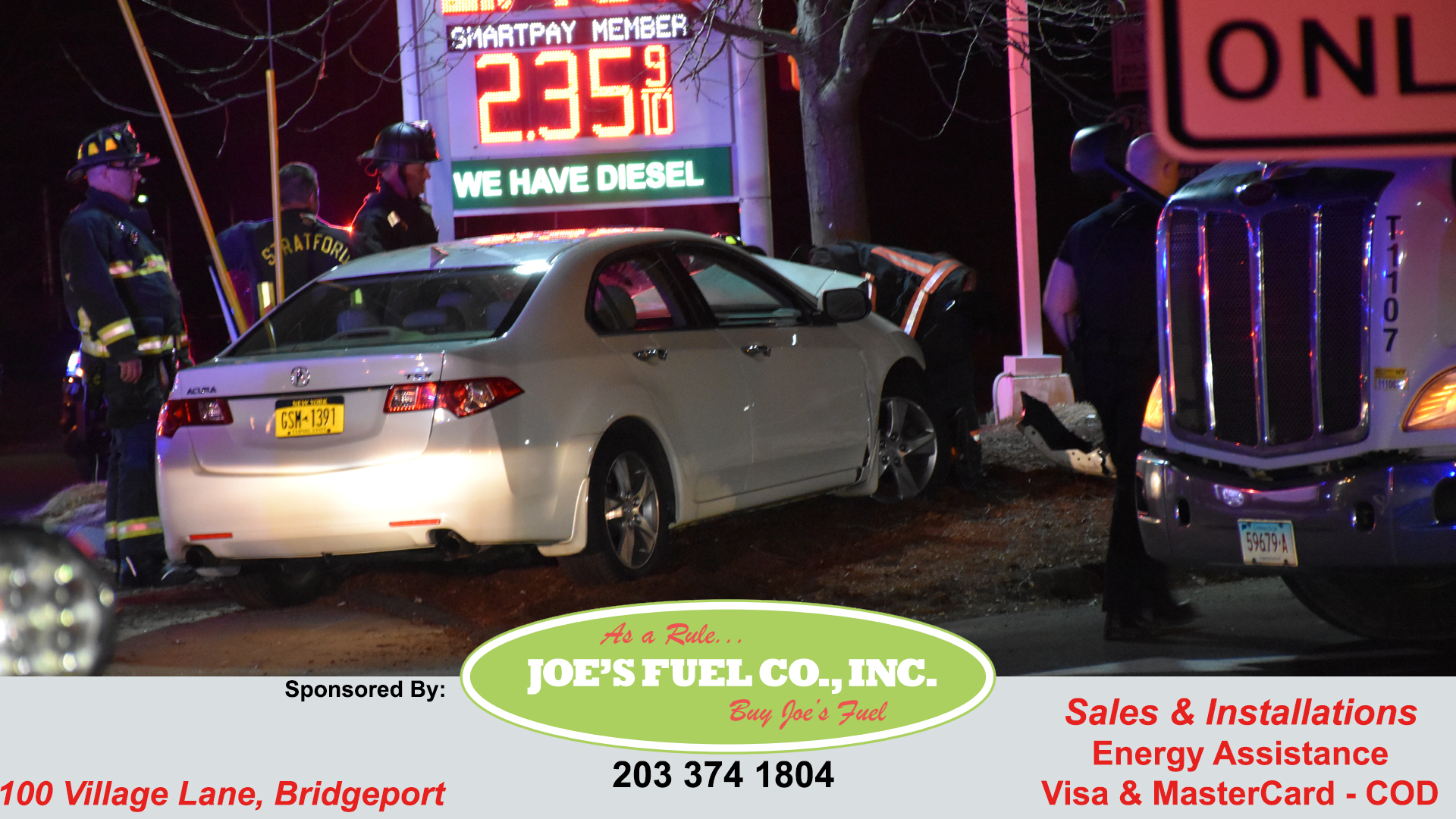 2019-03-17 @ 11:00pm– A car traveling over 100mph over the Moses Wheeler Bridge southbound turned off his lights to avoid the state police who were pursuing him. The car got off exit 32 and crashed into a tree in front of the Cumberland Farms 1290 W Broad Street. The driver of the pursued vehicle was injured and transported to the hospital by Stratford EMS.