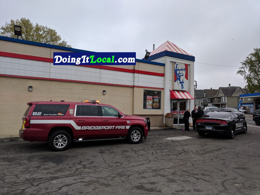 2019-05-03 @ 2:45pm–#Bridgeport CT– A person came into the Kentucky Fried Chicken at 325 Boston Avenue in search of a job and spoke with the manager. Unhappy with the manager’s answer he began assaulting the manager according to first responders. To defend himself, the manager allegedly grabbed a pot of hot water and threw it at his assailant who then fled and attempted to drive to Bridgeport Hospital. He made it as far as 790 Boston Avenue where first responders transported him to the burn unit at Bridgeport Hospital with burns to his chest. The manager was treated by EMS for head injuries.