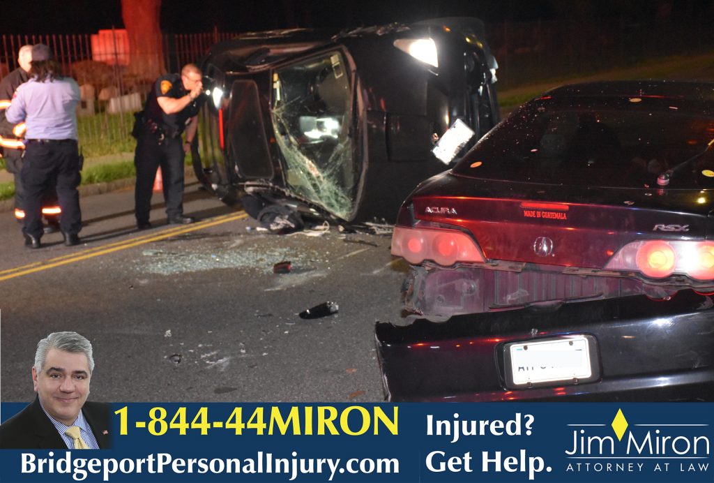 2019-05-04 @ 10:28pm–#Bridgeport CT– One person was injured in a rollover crash on Dewey Street near Mountain Grove Street. The person in the striking vehicle fled on foot. Dewey Street is closed until the crash is cleared.