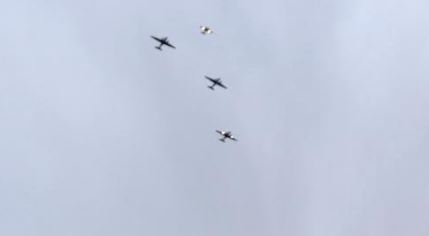 8:00PMish – ¡Facebook iluminado con imágenes de 4 aviones volando sobre su vecindario. ¡Pensando en la película Red Dawn, grité a Wolverines! Pero resultó ser unos aviones de D Day en dirección al aeropuerto de Oxford para un espectáculo aéreo el 18 de mayo.