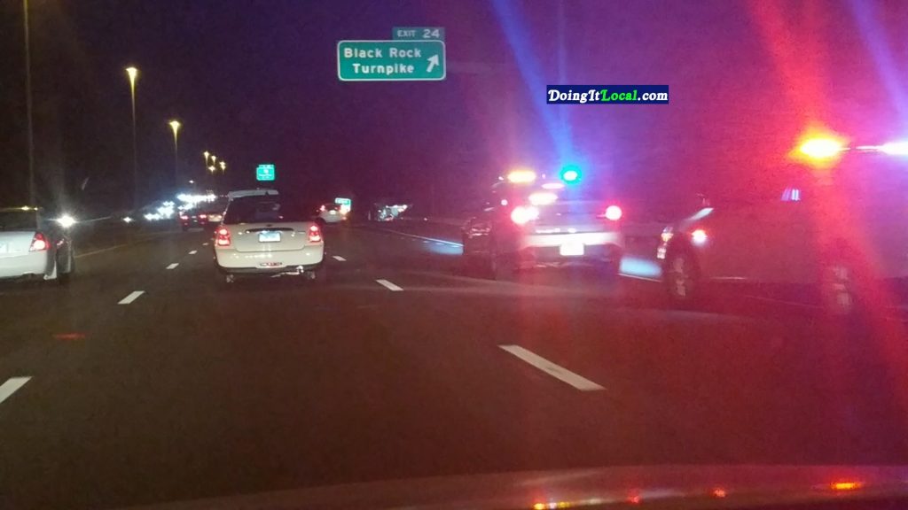 2019-06-15 @ 10:00PMish– State Police were in pursuit of a vehicle on I-95 southbound just before exit 24 when the suspects in the car began throwing out the windows a white substance. Police boxed the car in and have two in custody near exit 23. Police were searching the shoulder of the highway near exit 24, Black Rock Turnpike Exit.