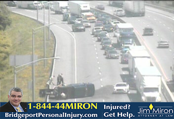 2019-06-04 @ 12:52pm – #Milford CT #cttraffic – Un accidente con un carro volteado en dirección norte en el puente de Moses Wheeler. Espere retrasos en ambas direcciones.