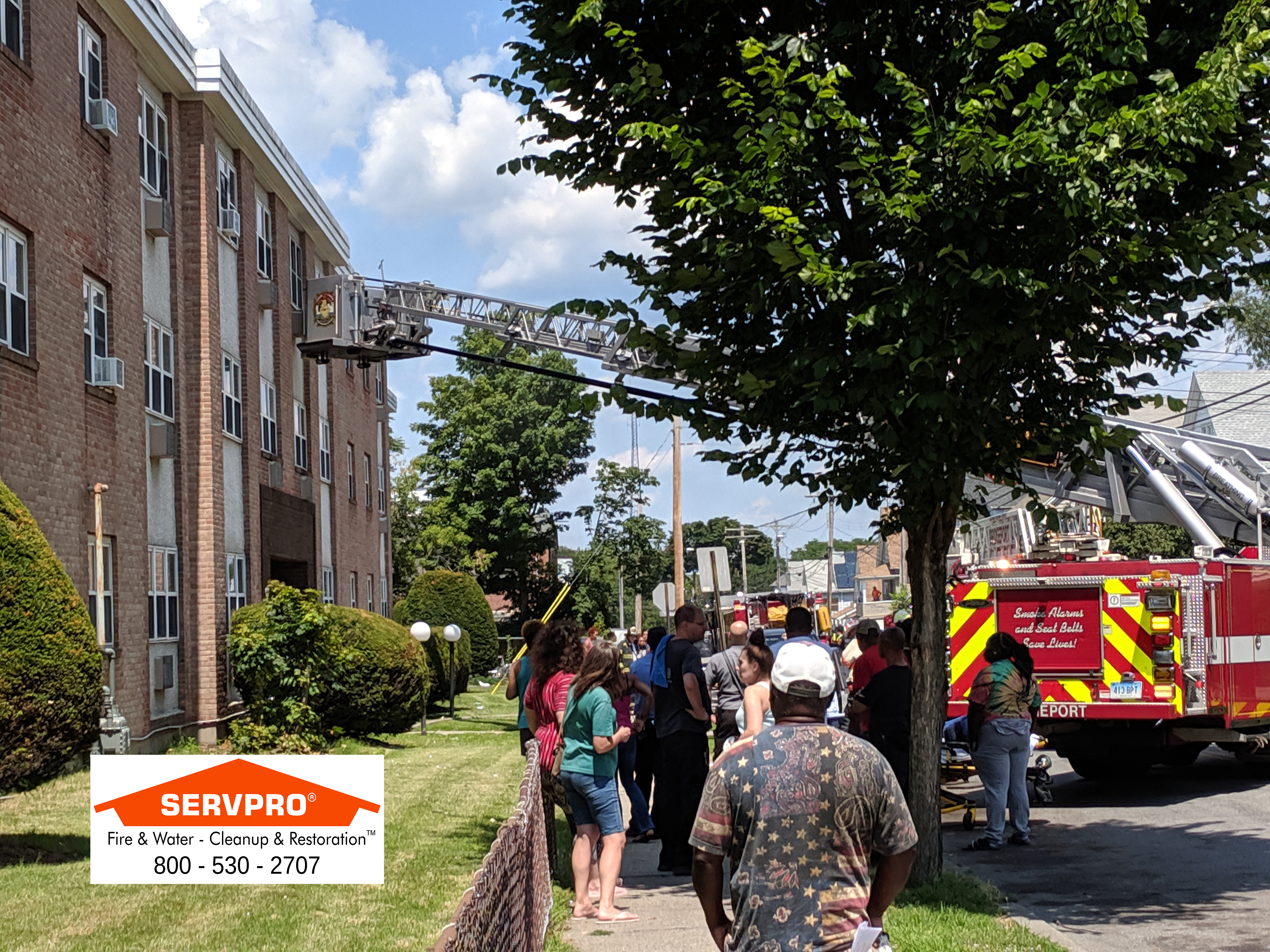 2019-07-14 @ 2:29pm–#Bridgeport CT– There was a fire on the third floor of a large apartment complex at 50 Monroe Street. Firefighter’s quick response kept the fire contained to the one apartment. Deputy Fire Chief Ronald Rolfe said that the people in that apartment probably won’t be able to return to their apartment and that they are still assessing if everyone else can return to the other apartments. Animal Control was called for two rescued cats. There were no reported injuries.