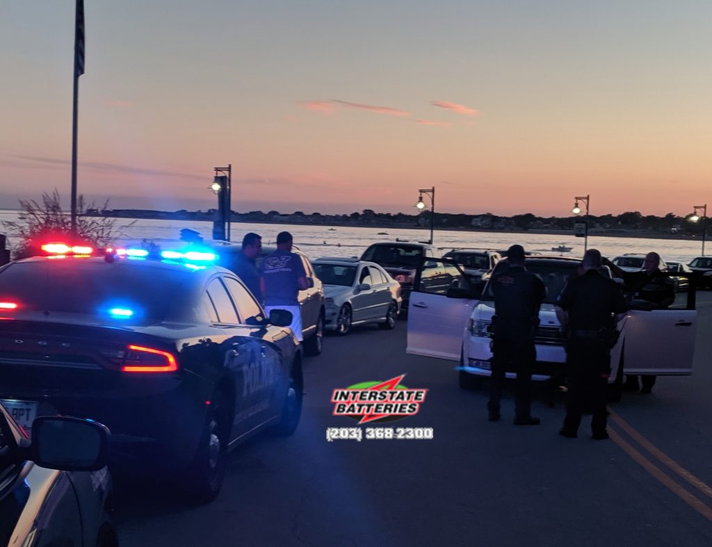 UPDATE: The pursuit exited in Black Rock down towards Captain’s Cove coming to an end at St. Mary’s by the Sea. There was a short teen-hunt, police quickly apprehended four boys and one girl after a brief search. I over-heard the owner of the car saying it was the second time it was stolen.