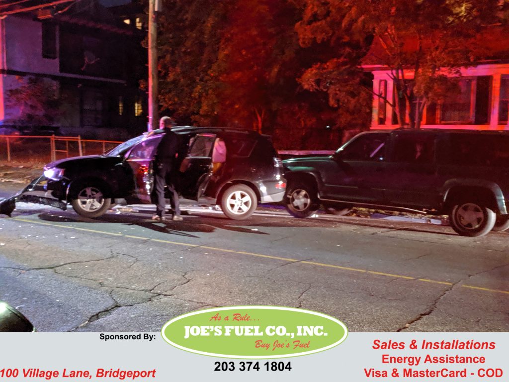 2019-10-11@12:35am–#Bridgeport CT– An SUV appeared to have rolled over striking parked cars on both sides of the street on Maplewood Avenue near Colorado Avenue.