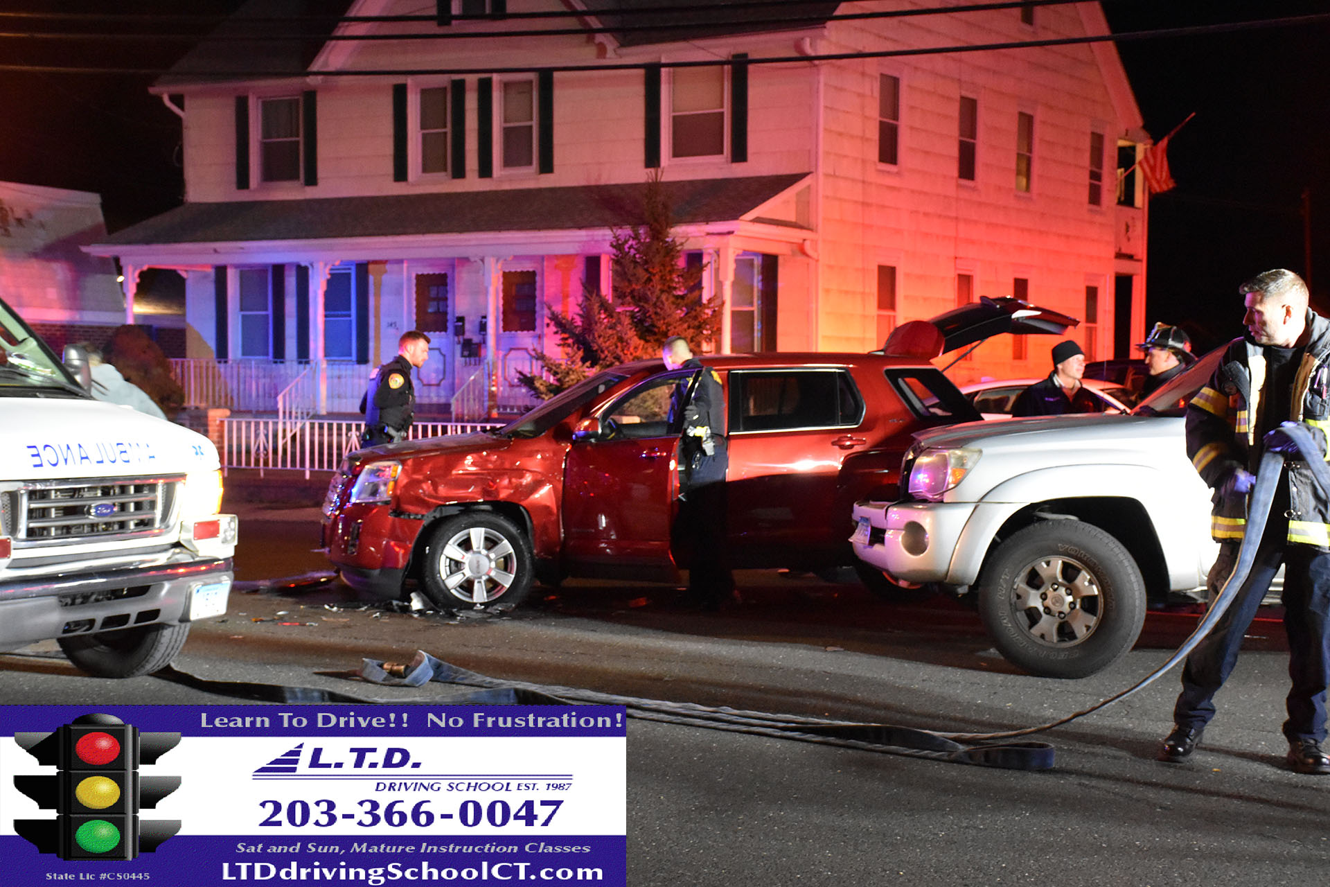 2019-11-08@7:11pm–#Fairfield CT– Firefighters were called to extricate a driver in a crash on Kings Highway East just past Villa Avenue.  The person was transported to the hospital as a trauma alert according to radio reports.