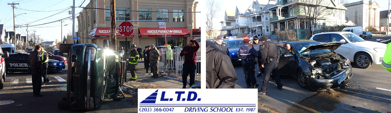 2019-12-19@2:50pm–#Bridgeport CT– Fairfield Avenue was temporarily closed at Colorado Avenue for this two car crash that put one car on it’s side. EMS was still evaluating the occupants of the vehicles when I left the scene.