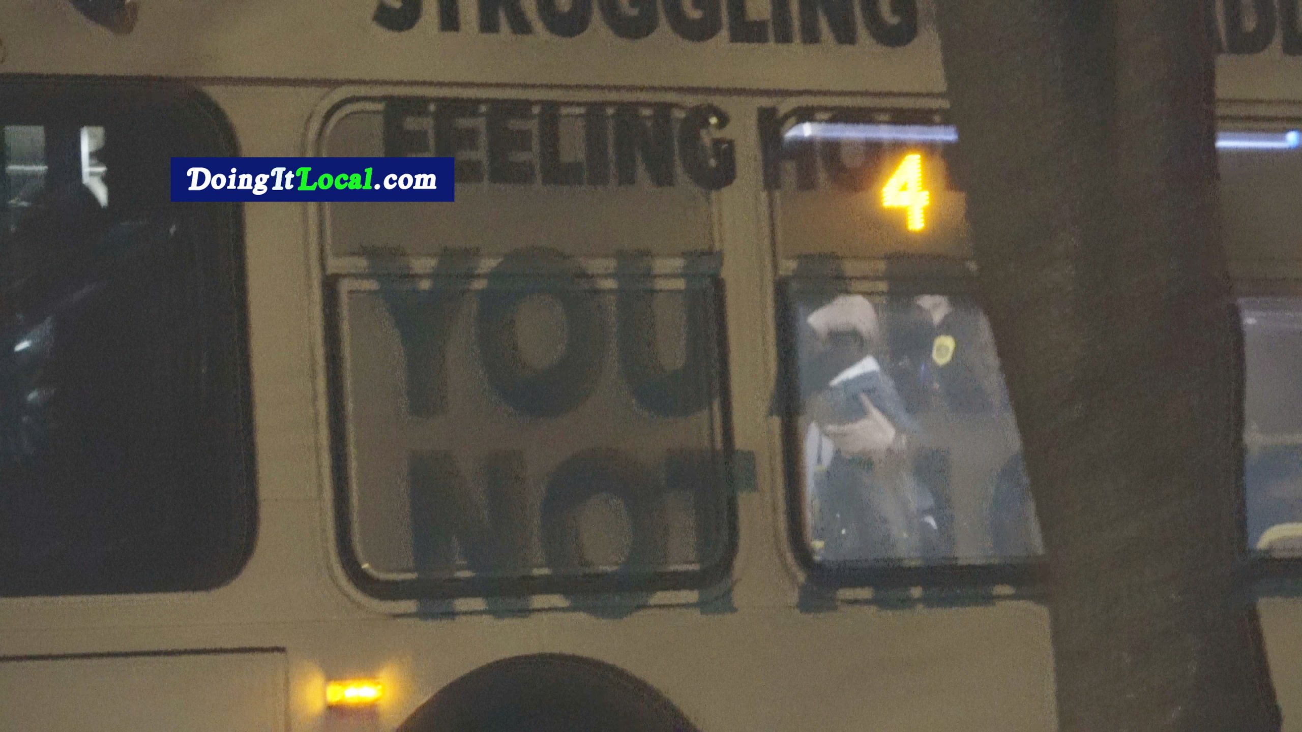 2019-12-23@5:57pm–#Bridgeport CT–#Trumbull CT– A mom apparently forgot her child who appeared to be sleeping while traveling on a city bus. The mom realized it while she was at the Trumbull Mall on Main Street. Bridgeport Police stood by with the child on the bus parked at Park Avenue and Dixon Street. A Trumbull Police Officer brought the mom to Dixon Street to be reunited with her child. You can see the officer and child below the #4 in the picture.