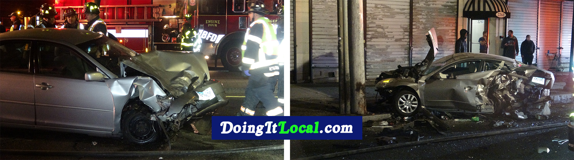 2019-01-16@12:02am– Just after midnight a car slammed into a parked car in front of 2260 Fairfield Avenue (across the street from the post office). The driver of the car was injured and transported to the hospital with unknown injuries. According to radio reports approximately 15 gallons of gasoline spilled into the street which did not affect any drains or waterways. The firefighter used absorbent materials as well as spill pads to contain the gasoline. Firefighters requested the Connecticut Department of Energy & Environmental Protection (DEEP) for remediation of the spill.