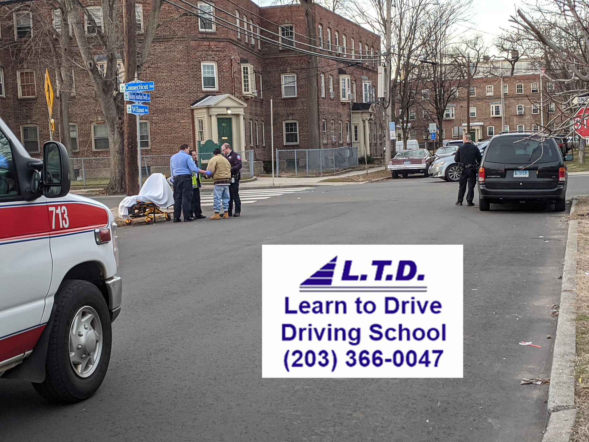 2020-02-15@4:40pm–#Bridgeport CT– It took a lot of convincing by police and EMS to have the pedestrian that was struck to go to the hospital, but he finally did. The incident took place at Connecticut and Wilmont Avenue.