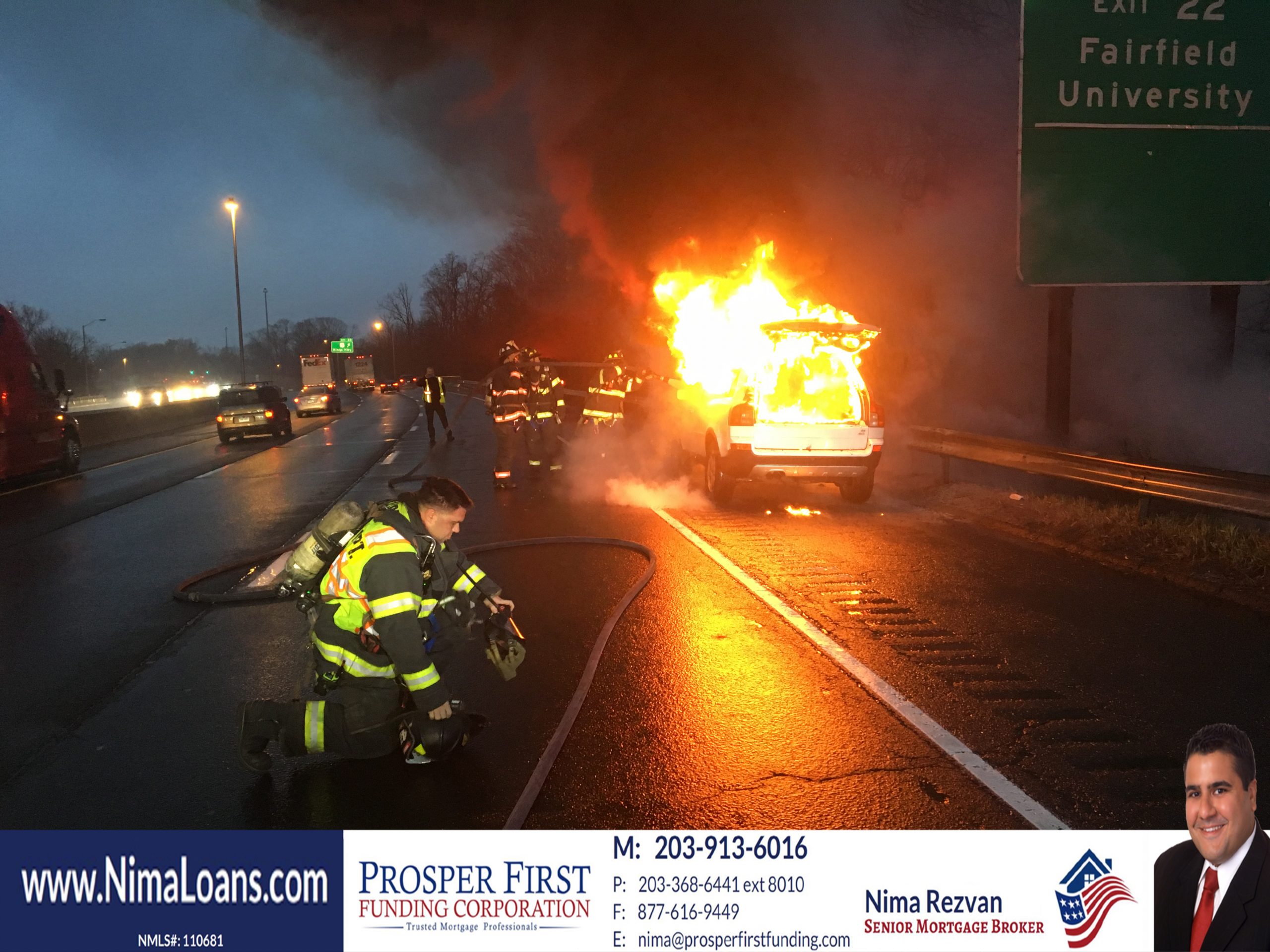 2020-02-26@6:20am–#Fairfield CT–The Fairfield Fire Department responded to a reported vehicle fire on I-95 SB just prior to Exit 23 (Meadowbrook Road) off-ramp. The vehicle was located in the right break down lane and was fully involved when firefighters arrived on the scene. Under the direction of Lt. Denis Eannotti, firefighters from Engine 2 and Ladder 2 quickly extinguished the blaze. Traffic on I95 SB was disrupted for approx. 30 minutes while firefighters completed extinguishment and waited for the tow truck operator to remove the vehicle. The owner reported the check engine light had gone on in his Volvo SUV and immediately after he noticed fire in the engine compartment. With the help of a UCONN Police Officer on his way to work at the Stamford UCONN Campus, the driver removed his personal belongings from the car and waited for firefighters to arrive. According to Asst. Chief George Gomola – “Our firefighters did a great job of quickly and safely extinguishing this fire. I95 is the most dangerous place we operate. We appreciate the assistance from UCONN’s finest in keeping the operator safe until we arrived on the scene.”