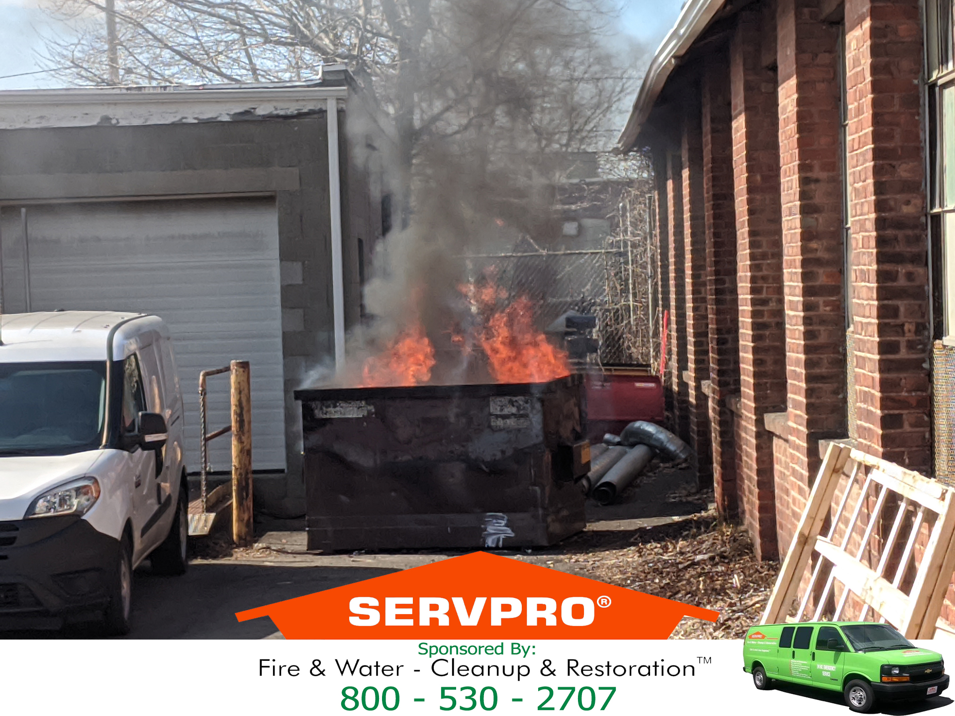 2020-03-15@11:42pm–#Bridgeport CT– An alert police officer on patrol discovered this dumpster fire on Holland Avenue. There was some extension to the building but firefighters quick response put the blaze out before it became a real problem.