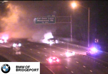 2020-03-17@9:30pm–#Milford CT–#cttraffic– Tonight’s vehicle fire is on I-95 northbound just before exit 40. The driver did get out of the car safely.
