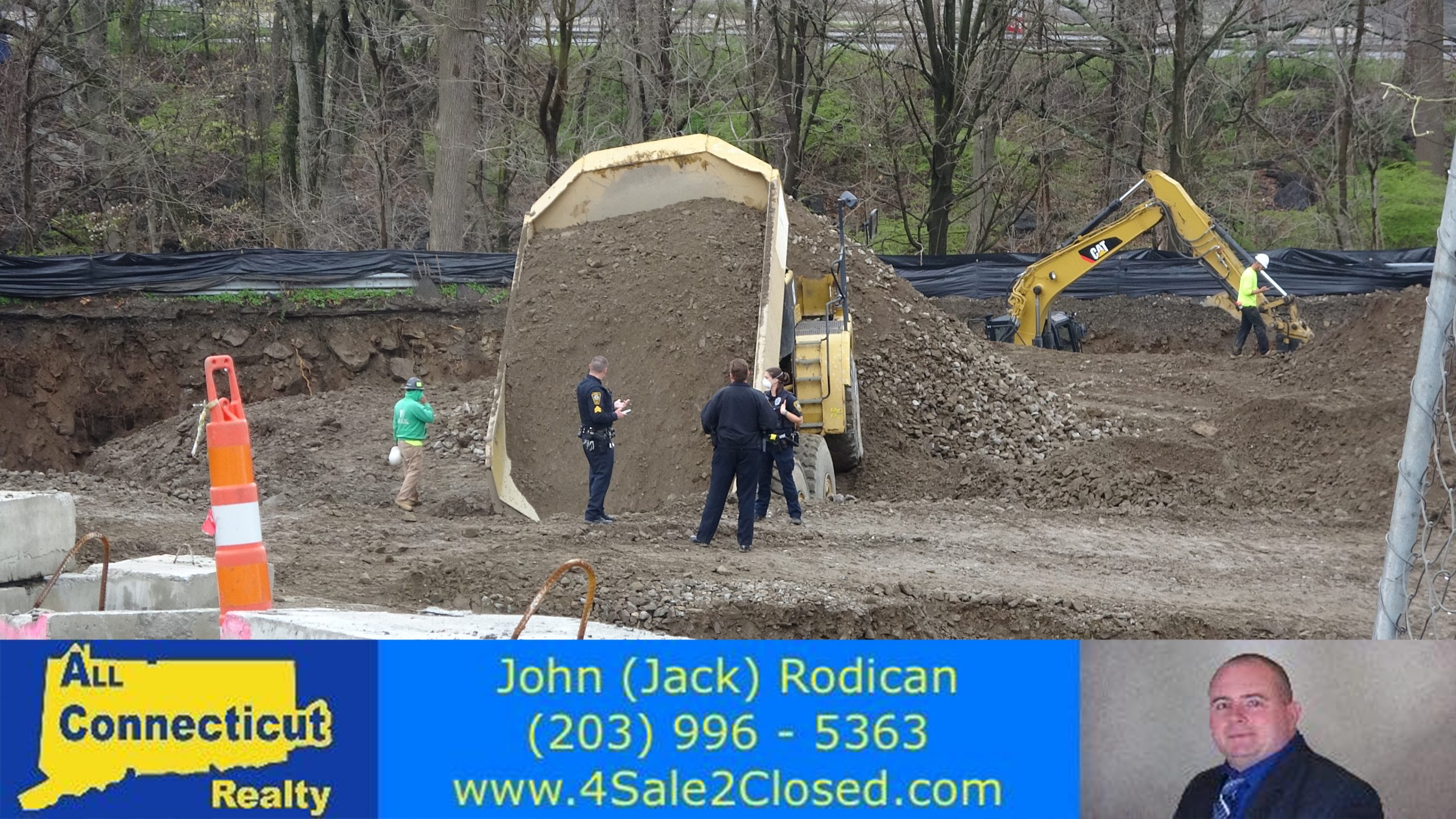 2020-04-21#Norwalk CT– A construction truck rolled into a large hole at 200-250 Glover Avenue throwing the driver into a hole with serious injuries according to radio reports.