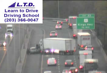 2020-05-04@7:53pm–#Fairfield CT–#cttraffic— A crash between a tractor-trailer and a car or cars on I-95 southbound between exits 23 and 24.