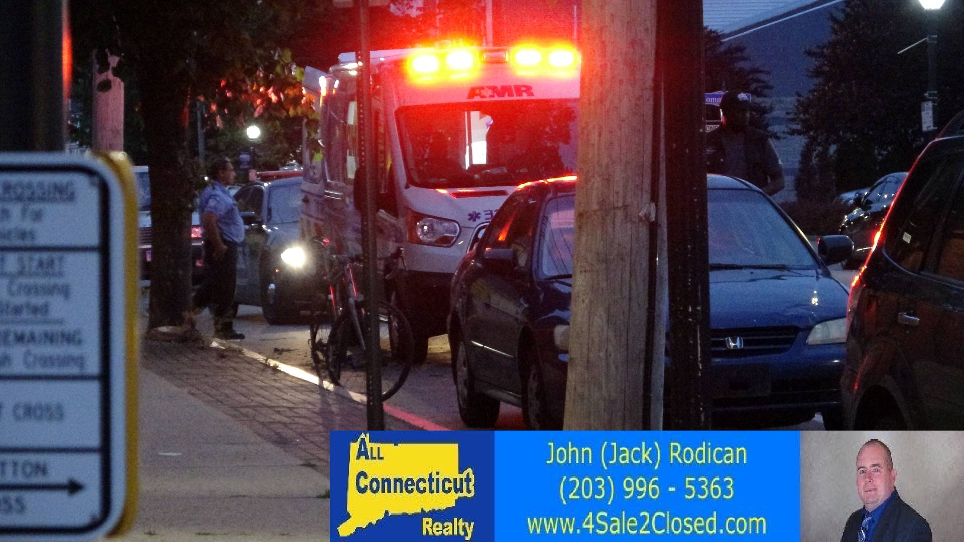 2020-06-04@8:21pm–#Bridgeport CT– A bicyclist was hit by a car on Main Street at Grand Street. This is the second incident there this evening with a man being stabbed an hour earlier.