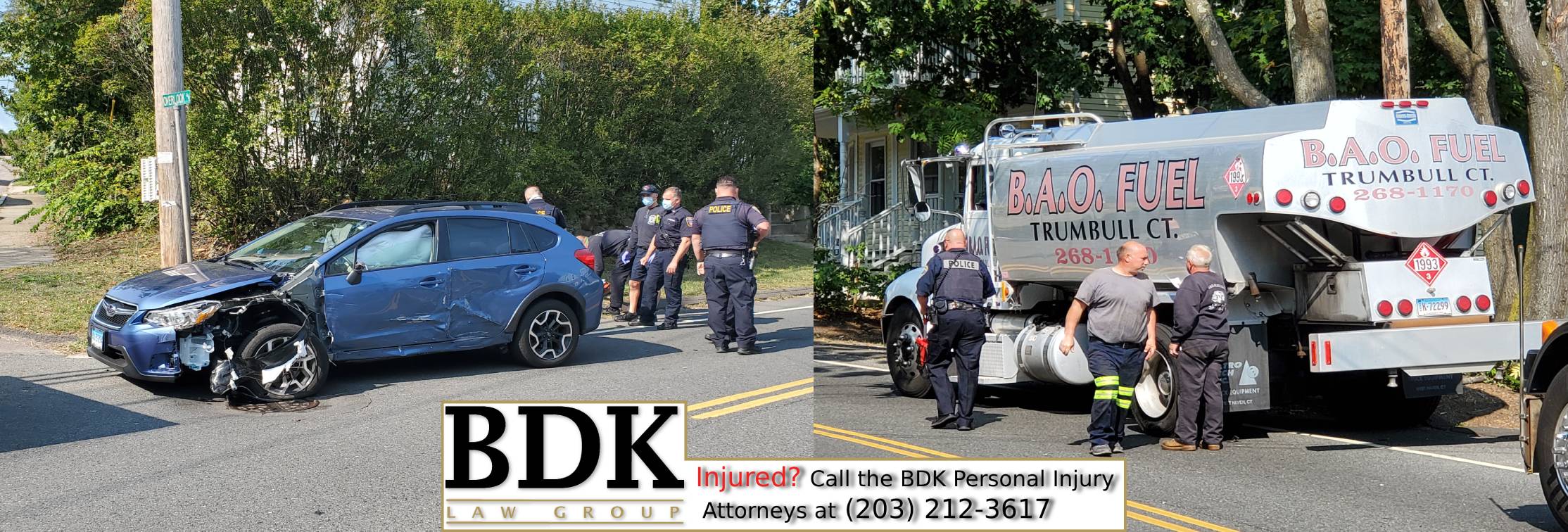 2020-09-21@2:50pm–#Fairfield CT– A Subaru and oil truck collided on Black Rock Turnpike near Overlook Road where the road narrows and turns.  The driver of the Subaru was transported to the hospital with unknown injuries.