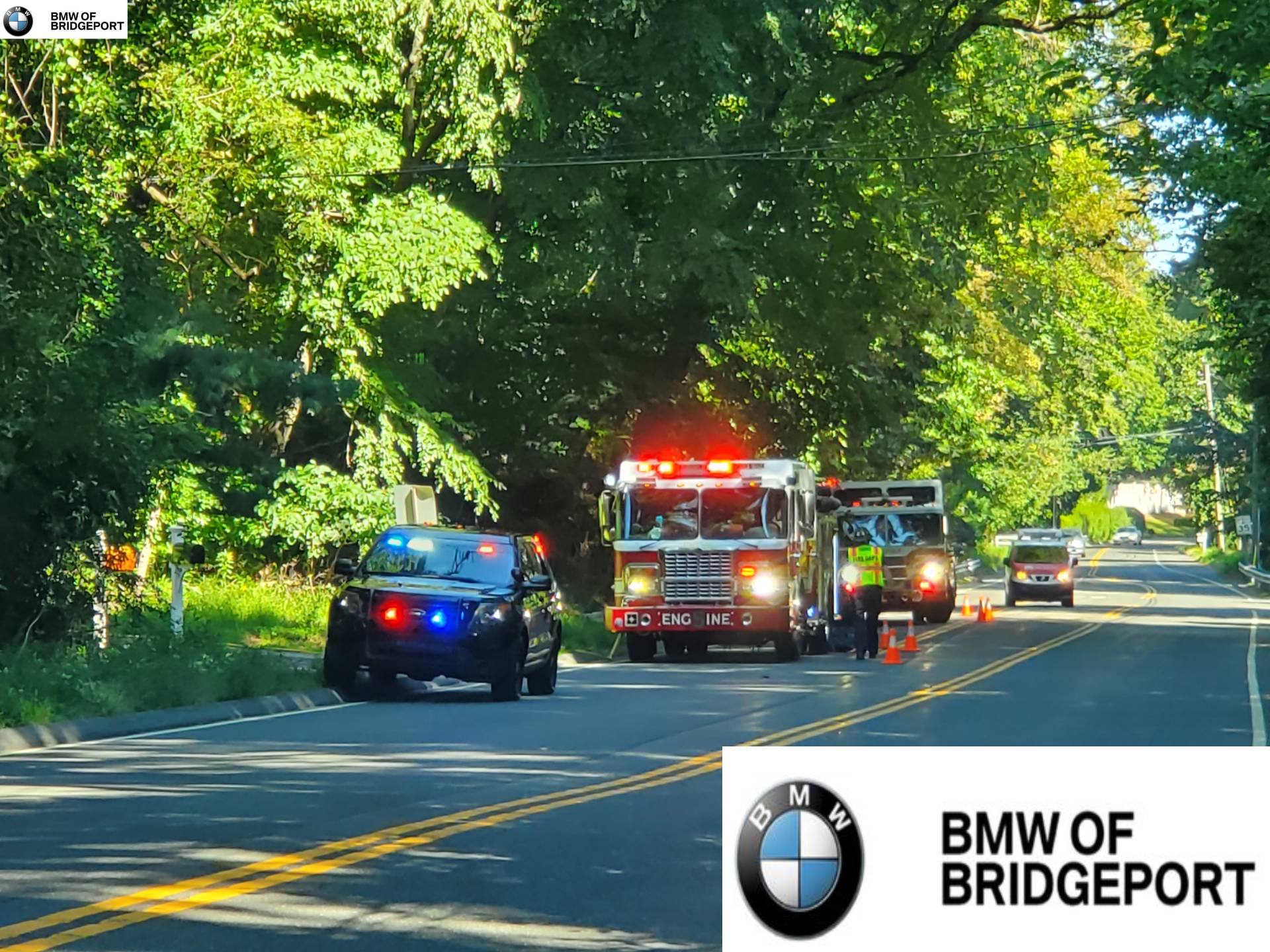 2020-09-19@2:38pm–#Fairfield CT–#ctfire– Firefighters were called for downed utility lines that eventually started a brush fire in the 4000 block of Black Rock Turnpike (near Tanglewood Road). Firefighters had to wait for UI to turn off the power before they could put out the brush fire.