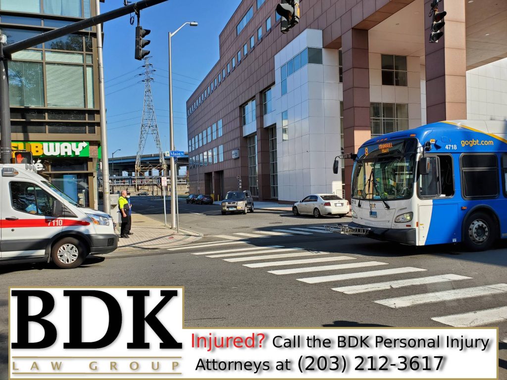 2020-10-10@2:39pm–#Bridgeport CT– Two ambulances were dispatched to a crash involving a car and city bus at Main and State Street. Multiple witnesses told me the bus allegedly ran the red light hitting the blue Honda and spinning in backwards a full three hundred and sixty degrees backward. As the witnesses pointed out the multiple cameras in the area in addition to the ones on the bus should verify this.