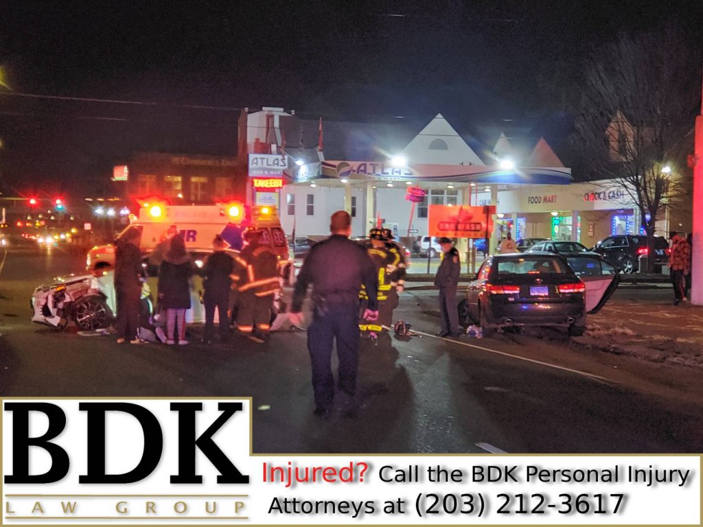 2020-11-28@11:10pm–#Bridgeport CT– A two car crash with injuries shuts down Fairfield Avenue at Holland Avenue.