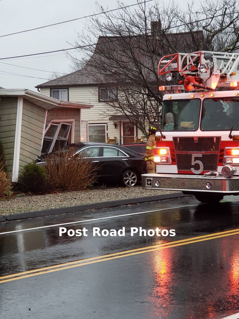 2020-12-05@9:30AMish– #Milford CT– There were no reported injuries when this car hit a house at the corner of Edgefield Avenue and South Street.
