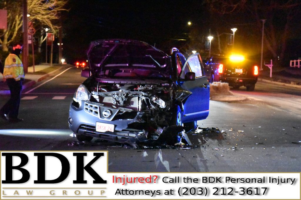 2021-03-15@9:40pm–#Fairfield CT– This vehicle t-boned a jeep in front of the university in the 5000 block of Park Avenue. The driver of the sedan was taken to the hospital with unknown injuries.