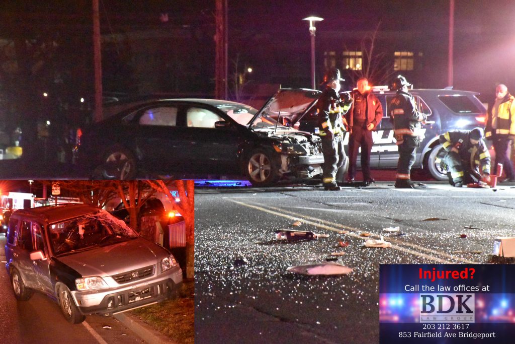2021-03-16@10:22pm–#Fairfield CT– Black Rock Turnpike at Commerce Drive is closed due to a crash. The silver vehicle was t-boned and rolled over and up righted itself and came to a stop near Duka Avenue about a block from the impact.