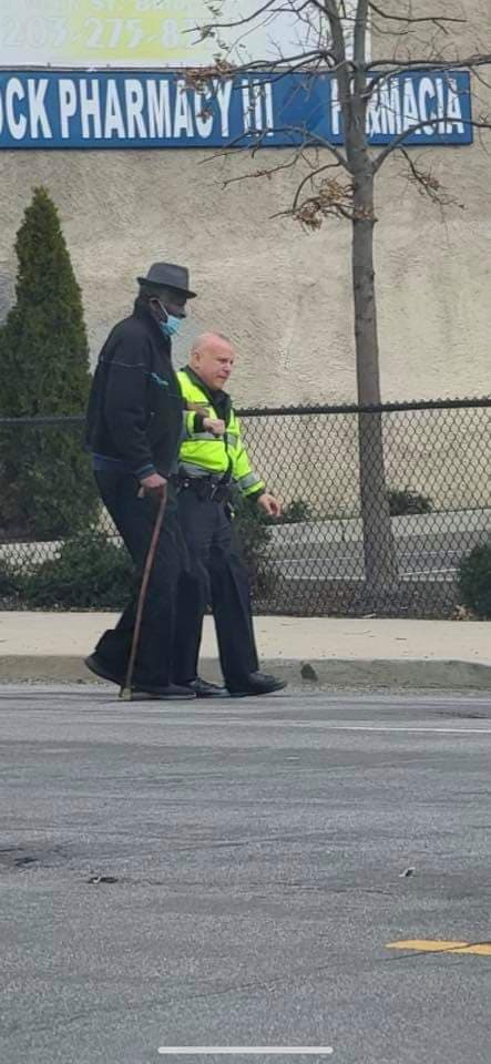 How about some likes for Bridgeport Officer Speranza who was working a road job when he spotted this elderly man attempting to cross the street. The officer stopped everything to make sure the gentleman crossed safely. Way to go Officer Speranza!