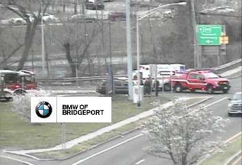 2021-04-16@1:40pm–#Bridgport CT– #cttraffic– Firefighters gain access to a driver in a car on the Route 8/25 on ramp (northbound) at Chopsey Hill and North Avenue who was found unconscious. The driver was transported to the hospital.