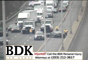 2021-04-13@11:51am–#Fairfield CT– #cttraffic– A crash between a car and tractor trailer in the left lane and left breakdown lane near exit 24 northbound. Expect delays.